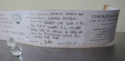 | Exact details unknown. Moment Memory Fragments severely contaminated. | ![]() David Cameron's lost Marbles as discovered by G.I.P.I. Soon to be returned |
